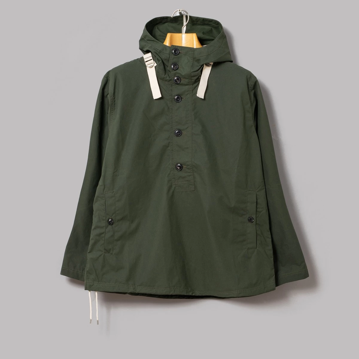 100% cotton. Waxed cotton fabric. Drawcord hood. Regular fit. 100% cotton. Cotton twill fabric. ½ zip fastening with tab pull. Attached hood. Garment dyed. Two patch pockets. Drawcord hem. Regular fit. A Waxed Button Smock is just one of many things that Albam know how to do well, so it’s no surprise that this water-defying number packs a real punch. Loads of carefully considered details here, including that breeze-enticing buttoning and that duad of workwear-flavoured pockets to fulfil all your receipt-cramming requirements. One for the weekend errand dash then?