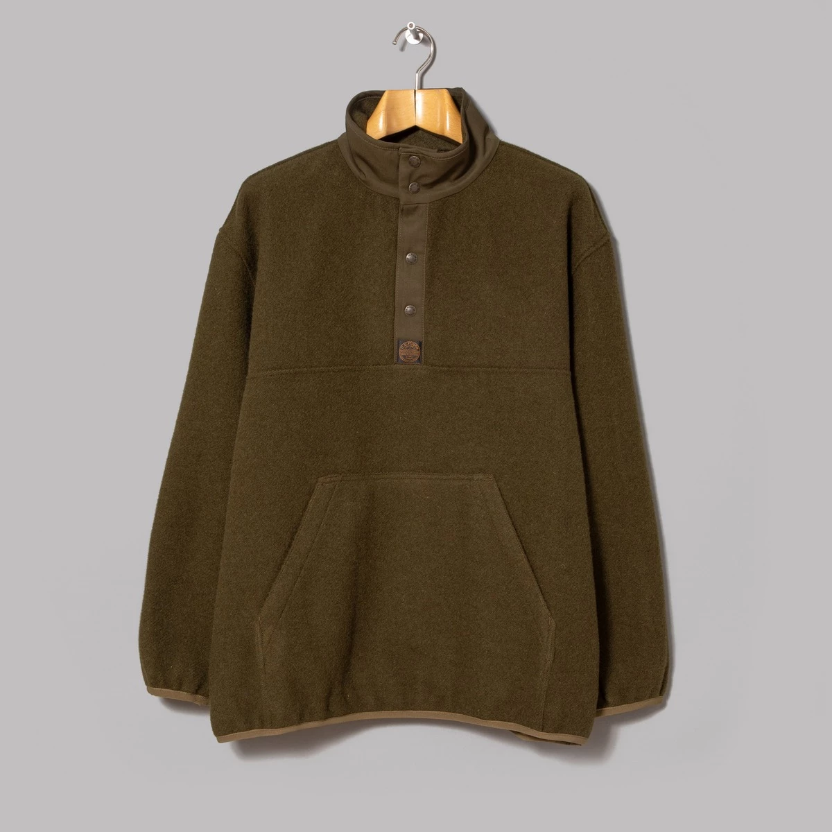 100% pure new wool. Stand collar. ½ press-stud fastening. Kangaroo pocket. Woven brand patch. Regular fit. Here we are – the Oka Wool Popover by Filson and it certainly is a sight for sore eyes. Pure new wool fabrication… Kangaroo pocket bigger than a… errr…kangaroo’s… and that bib-based buttoning? Endless hours of clunking up for grabs here.