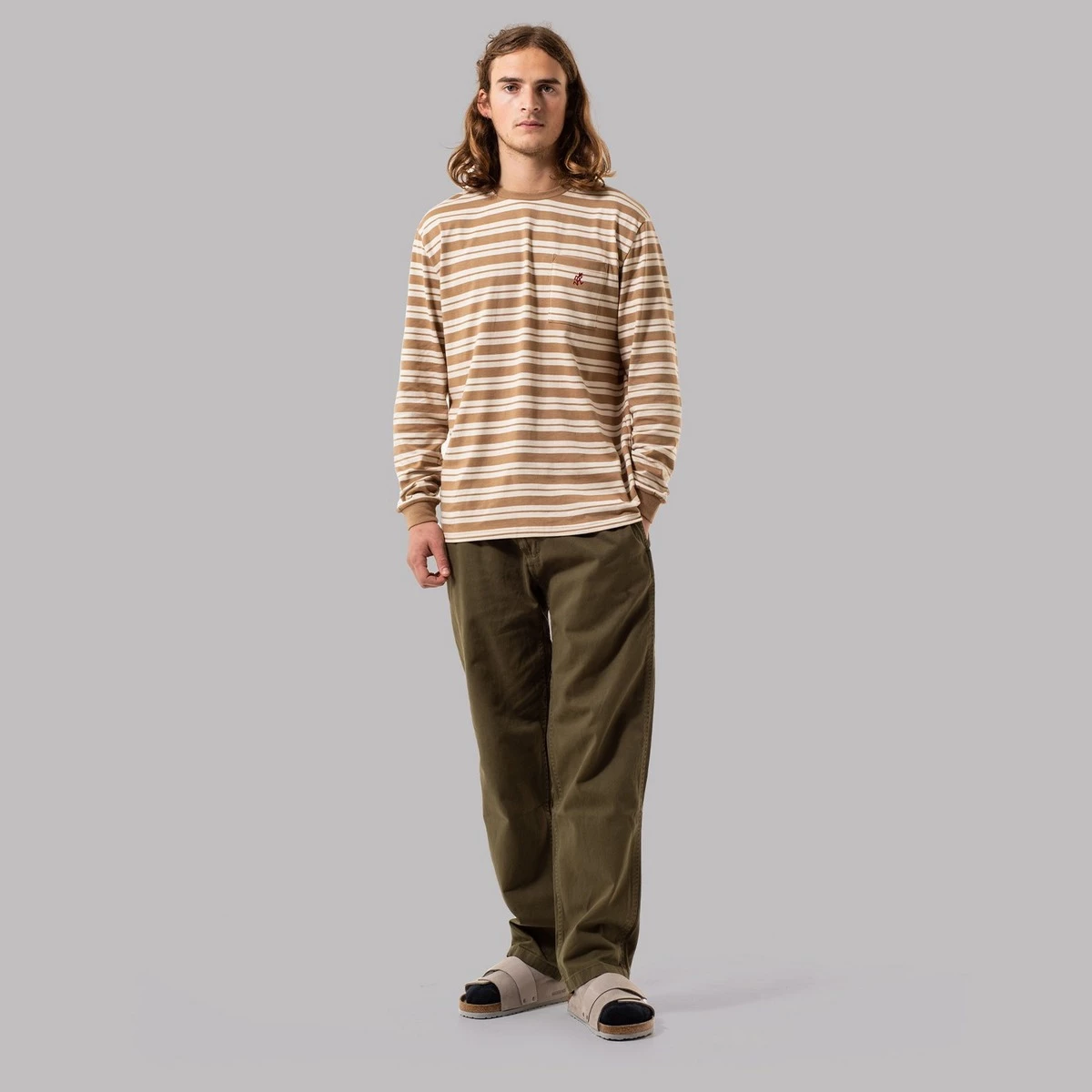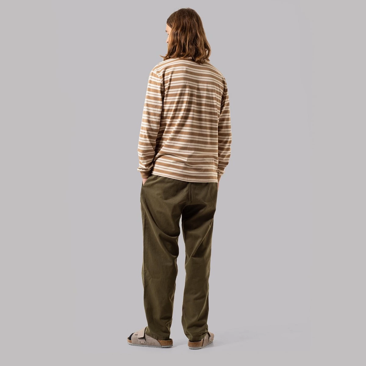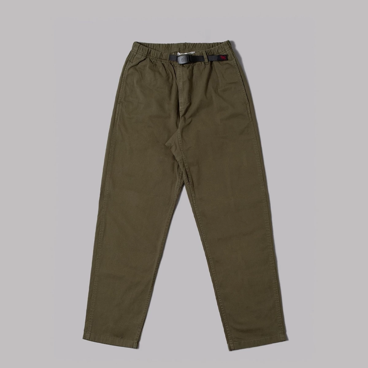 98% cotton, 2% polyurethaneTwill fabric Elasticated waist with built-in belt Two front pockets Two rear pocketsSlightly tapered legThese are the Gramicci Pants. They’ve got the classic Gramicci details, like the elasticated waist and that crotch gusset for extra-flexibility, and they’re made from really tasteful cotton twill fabric that makes ‘em look dead classy. Real high-action trousers for climbing, scrambling, strolling and sitting.