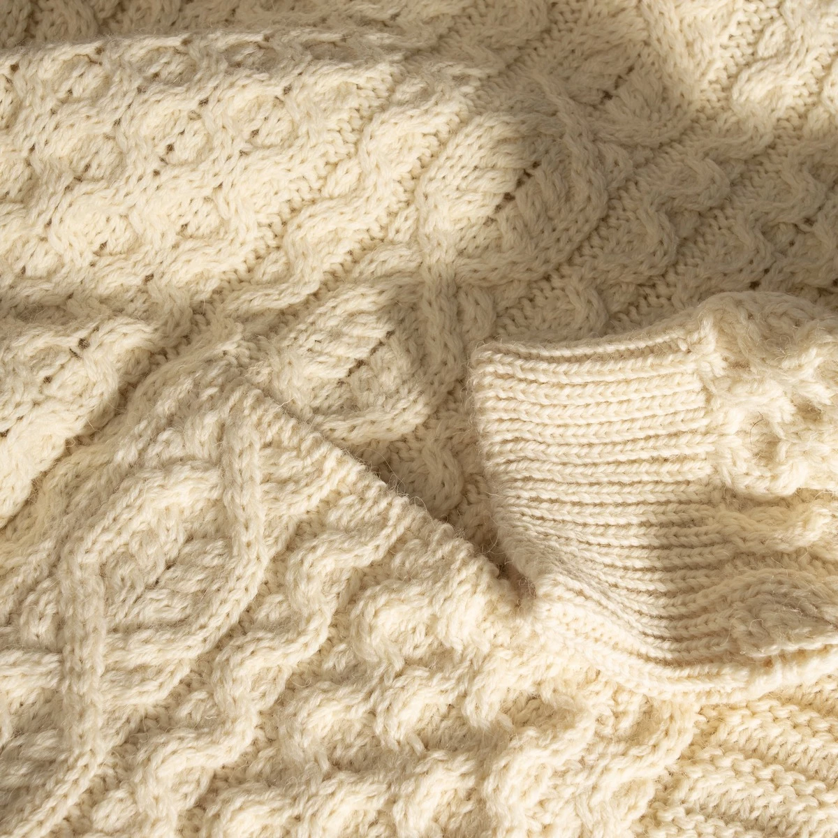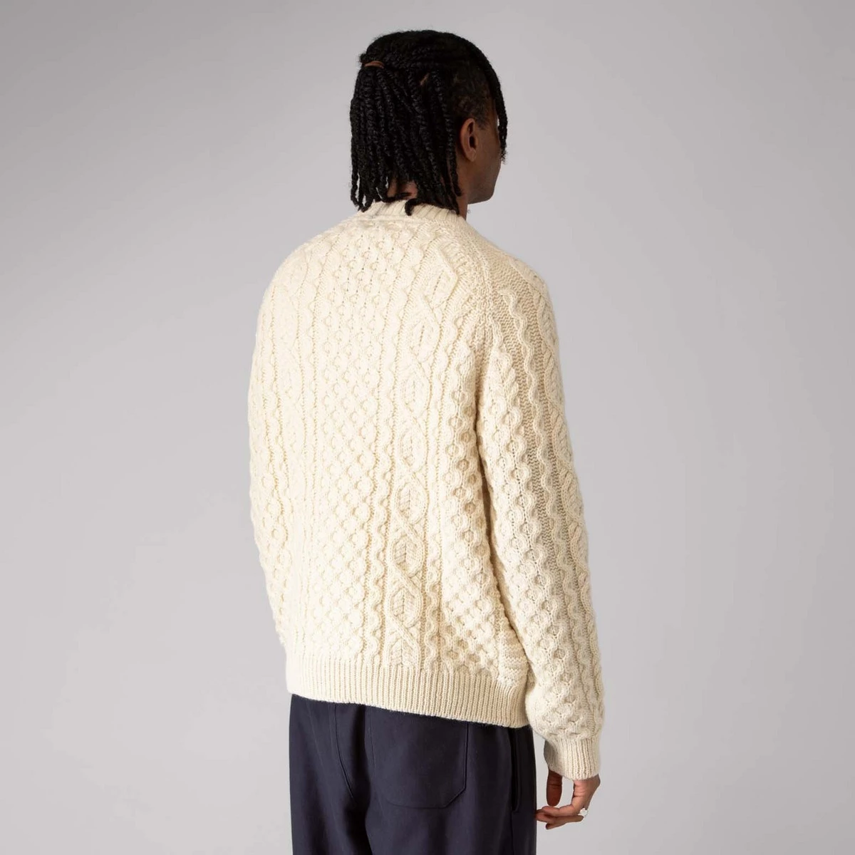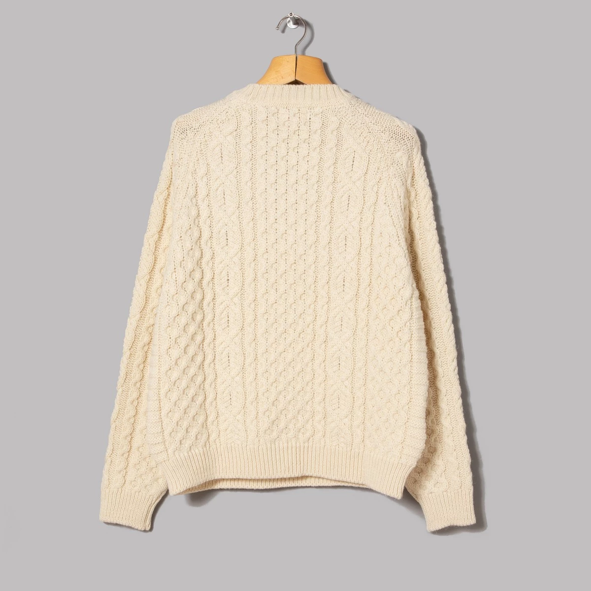 100% British wool. Aran knit. Ribbed crew neck, cuffs and hem. Two patch pockets. Made in England. Relaxed fit. Fans of staying warm can rejoice – we’ve made another round of Aran jumpers! This time, in some mind-fractillating new hues. Like most menswear hall-of-famers, the Aran jumper came from humble beginnings. First intended for Irish fishermen back in the 19th century (and usually knitted by their wives), these eventually found their way onto the torsos of the likes of David Bowie and Steve McQueen, thus cementing their place in the history books. Ours are made in England and sport that el classico chunky cable-knit pattern, with the added benefit of a relaxed fit, a low-profile collar, and precisely two ultra-useful patch pockets, meaning it’s a good deal more wearable than anything you’d find stacked in the back of a musty old gentlemen’s outfitters.