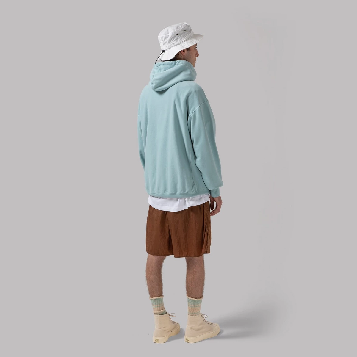 This is the humbly-titled Hooded Sweat. We opted to concoct this out of stout jersey cotton, which gives it a taste-bud-tingling, old-world sportswear flavour conspicuously absent from most modern garb. We’re pretty proud of the shape too – boxy but by no means baggy, this is the way hoodies should fit. Just a quick aside to let you know that these may shrink a bit after their first wash, so it’s worth sizing up, but it should retain its shape after a hang-dry and a good iron. Probably not a wise idea to blast these on a 60° wash though – we recommend 30° at the absolute most.