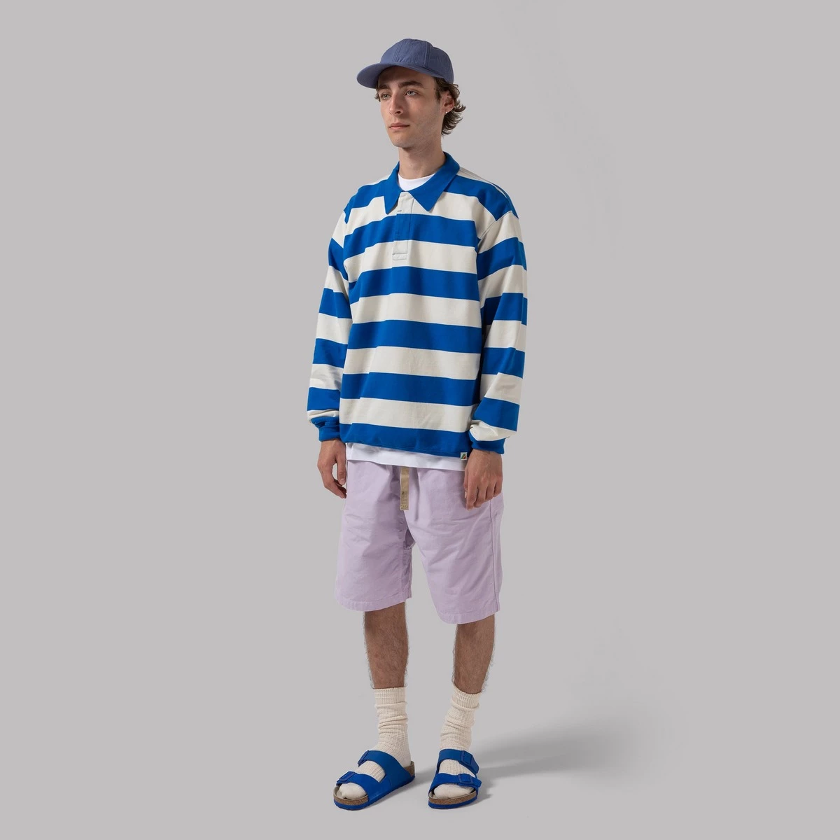 Oi Polloi Sportswear Co. (E.g. yours truly) have concocted this rather fetching Rugby Shirt number, and for what it’s worth, we think we’ve done a pretty phenomenal job of it. Based on athleisure shapes from yore, we’ve dished out some of the best cotton jersey fabric we could lay our filthy mitts on to make this downright classic of the scrum-schmutter variety. There’s a fair few evening’s entertainment to be had thanks to the plinkity-plonk of those premium press studs too.
