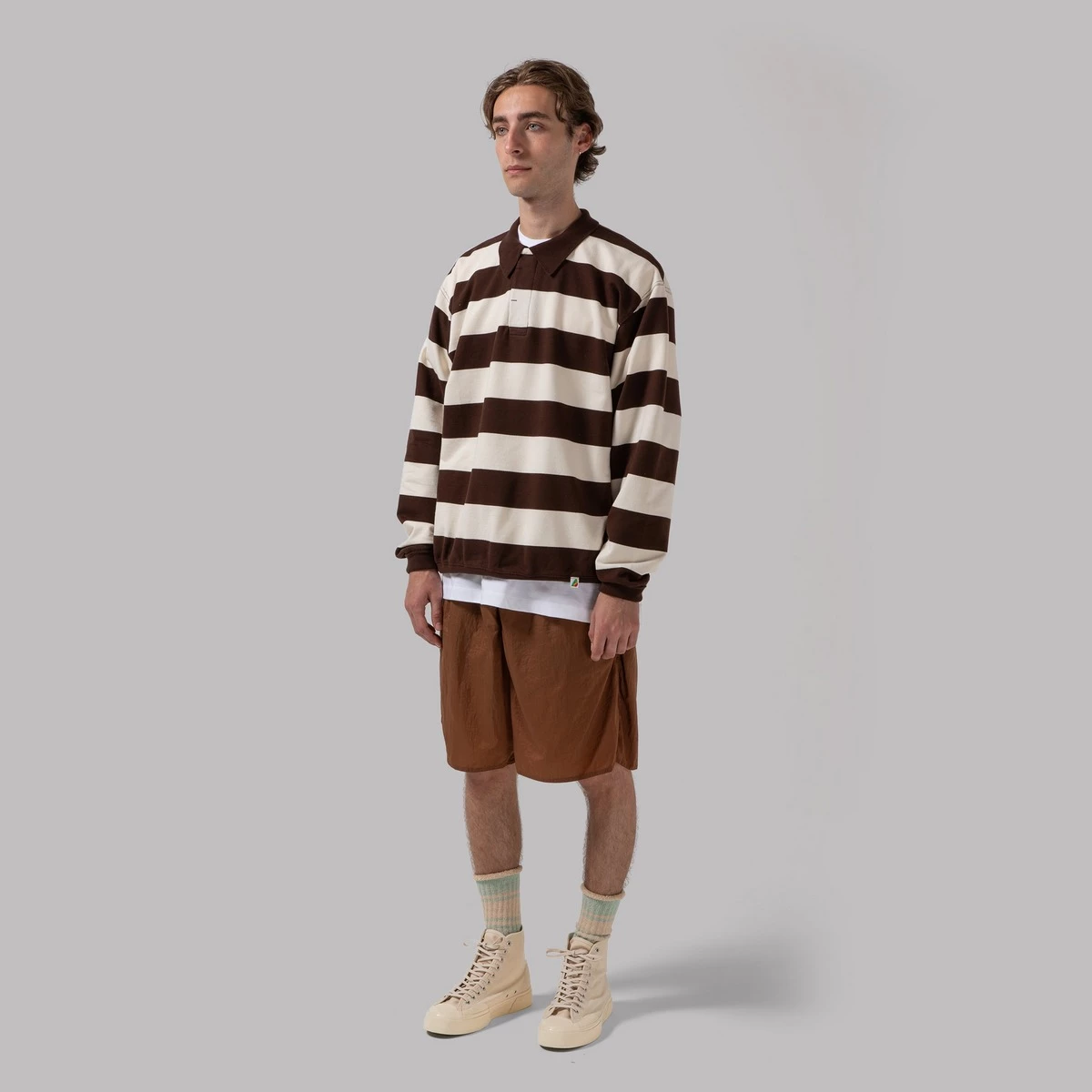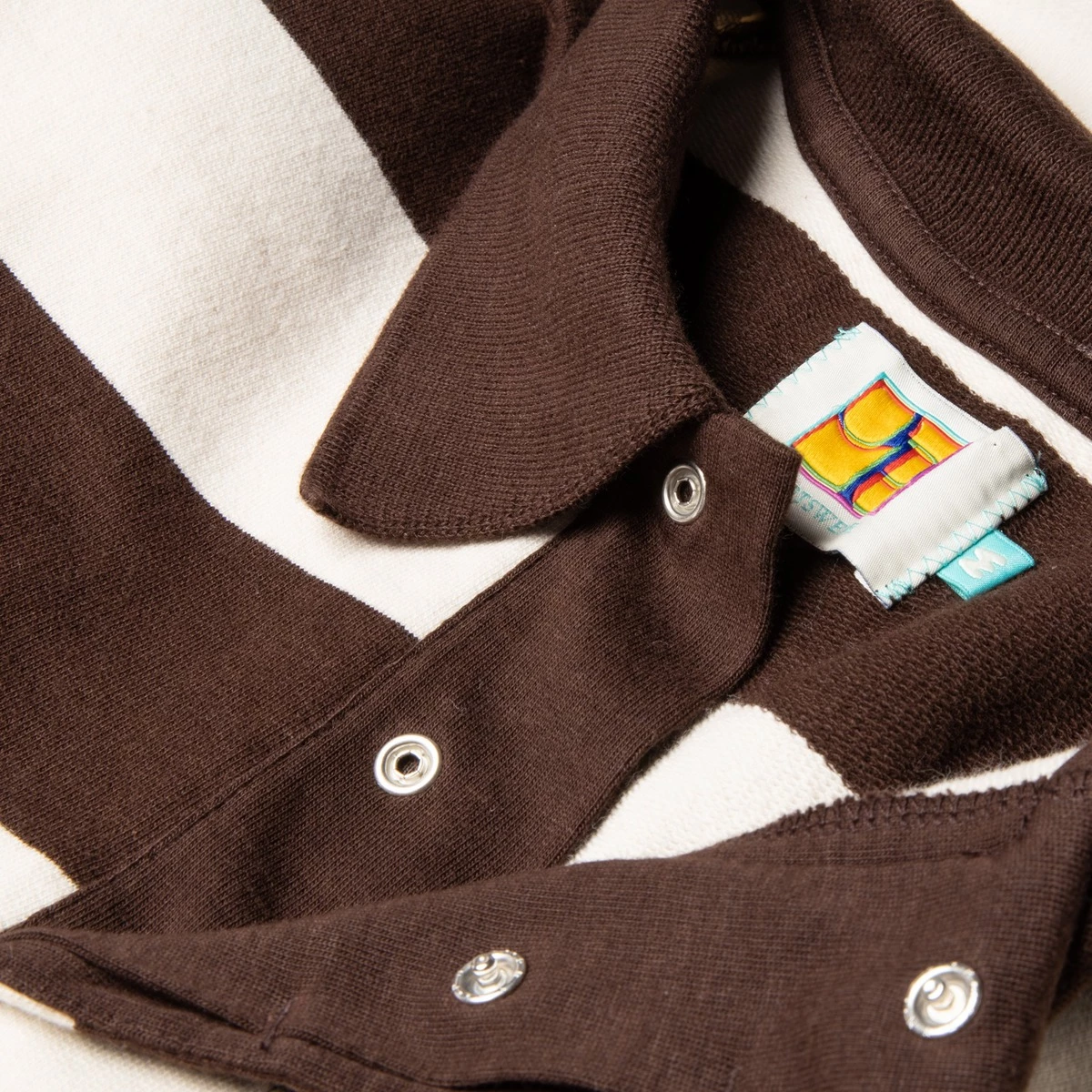 Oi Polloi Sportswear Co. (E.g. yours truly) have concocted this rather fetching Rugby Shirt number, and for what it’s worth, we think we’ve done a pretty phenomenal job of it. Based on athleisure shapes from yore, we’ve dished out some of the best cotton jersey fabric we could lay our filthy mitts on to make this downright classic of the scrum-schmutter variety. There’s a fair few evening’s entertainment to be had thanks to the plinkity-plonk of those premium press studs too.