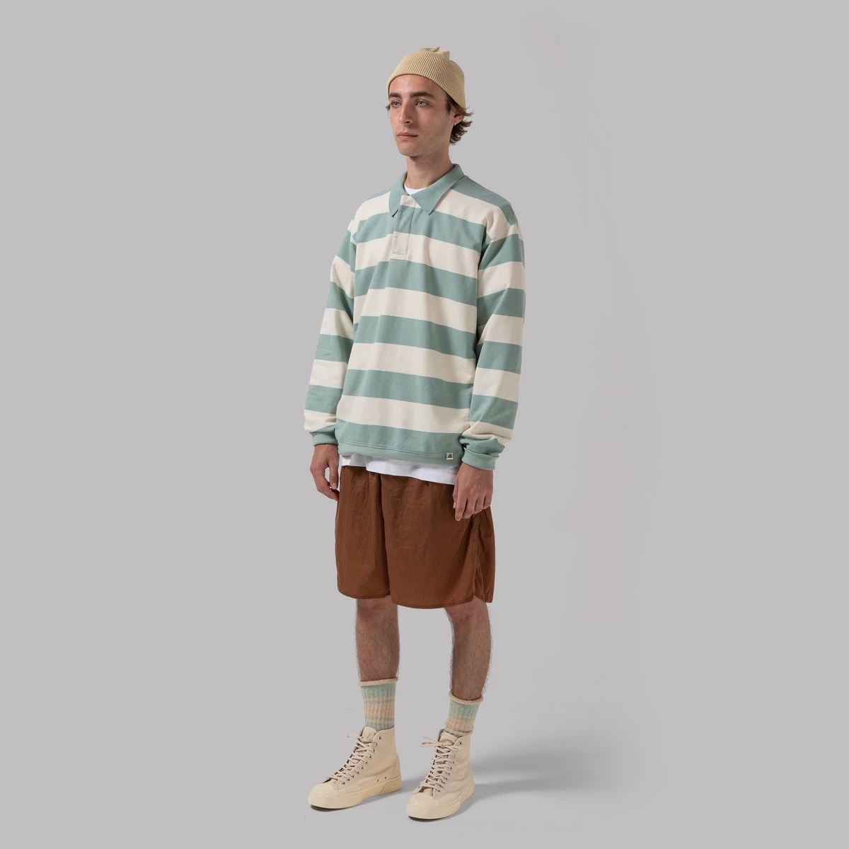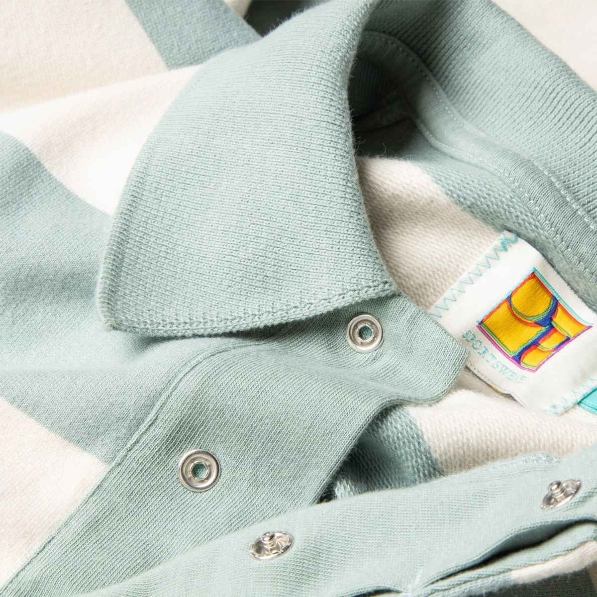 Oi Polloi Sportswear Co. (E.g. yours truly) have concocted this rather fetching Rugby Shirt number, and for what it’s worth, we think we’ve done a pretty phenomenal job of it. Based on athleisure shapes from yore, we’ve dished out some of the best cotton jersey fabric we could lay our filthy mitts on to make this downright classic of the scrum-schmutter variety. There’s a fair few evening’s entertainment to be had thanks to the plinkity-plonk of those premium press studs too.