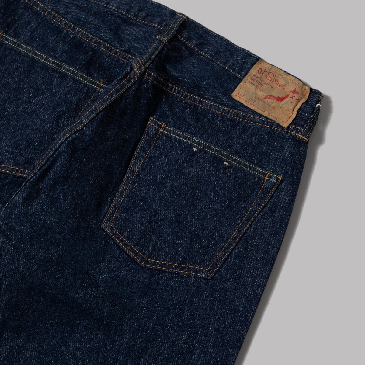 100% cotton. 13.5oz selvedge Japanese denim. Mid-rise. Tapered, slim leg. Copper buttons and rivets. Made in Japan for long affection. Considering OrSlow head-honcho Ichiro Nakatsu owns perhaps the biggest collection of denim-wares in the East, its probably not much of a surprise that the jeans he makes are pretty special. The Ivy Fit Denim Jeans are, without sounding too emotional about it all, an unbelievable pair of jeans. Every bit of them from the tastefully oxidised rivets to that majestically washed denim is enough to bring a tear to the eye of even the most casual of denim-fans. Anyway, enough of the preaching these are based around a vintage pair of Levis 505s, but have a lower rise and a slightly slimmer fit. Theyre not super-slim or anything, just slim enough.