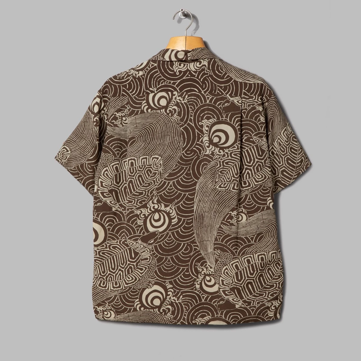 100% rayonLightweight fabricFull button fasteningSpread collarChest pocketStraight hemMade in JapanOversized fitThere’s nothing quite like a Hawaiian shirt. Not that there’s owt wrong with other shirts, but there’s a real laid-back, fun-loving quality to the Hawaiian that other, smarter shirts lack. This tasty number from orSlow is one of the best we’ve crossed paths with in a long time. It looks like the kind-of thing an New Age idealist would wear while cultivating crops in his beach hut after going AWOL from Vietnam, it’s made from some highly-breathable rayon stuff, and those turtles dotted about the garment look very friendly and chill. More clobber ought to be adorned with agreeable reptiles.