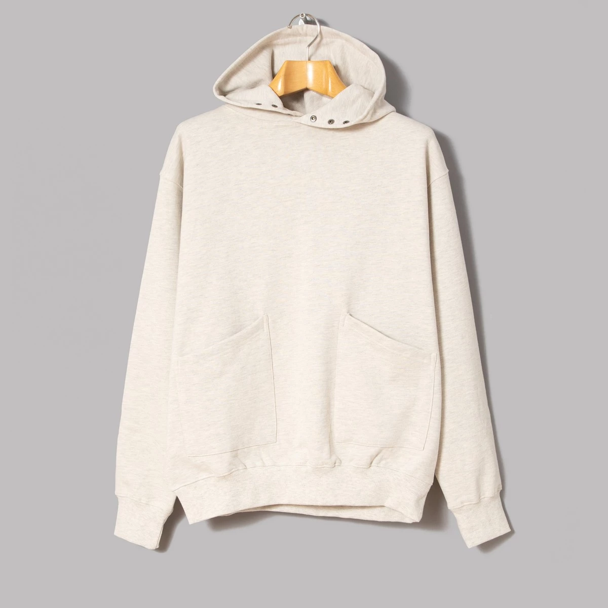 100% cotton. Loopback fabric. Press stud neck tab. Two patch pockets. Ribbed cuffs and hem. Regular fit. Uniform Bridge’s Hooded Sweat is quite the specimen. Rather than keep it simple with the usual drawcord and kangaroo pocket, Uniform Bridge have seen fit to spruce up the recipe with a press stud neck tab arrangement and two patch pockets. But sweatwear pursuits needn’t fret – the el classico loopback jersey is still very much present.