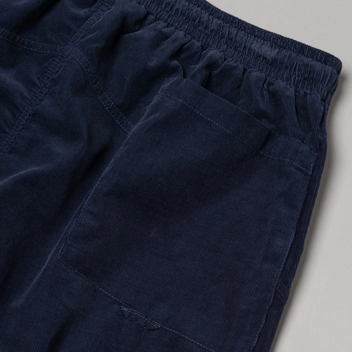 100% cotton. Needle corduroy fabric. Elasticated waist with drawcord fastening. Two slash pockets. One back patch pocket. Tapered leg. Regular fit.
